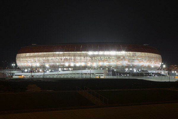 Az orosz szervezők nem sajnálták a pénzt. A novgorodi stadion 75 millárd forintnak megfelelő rubelből épült meg.